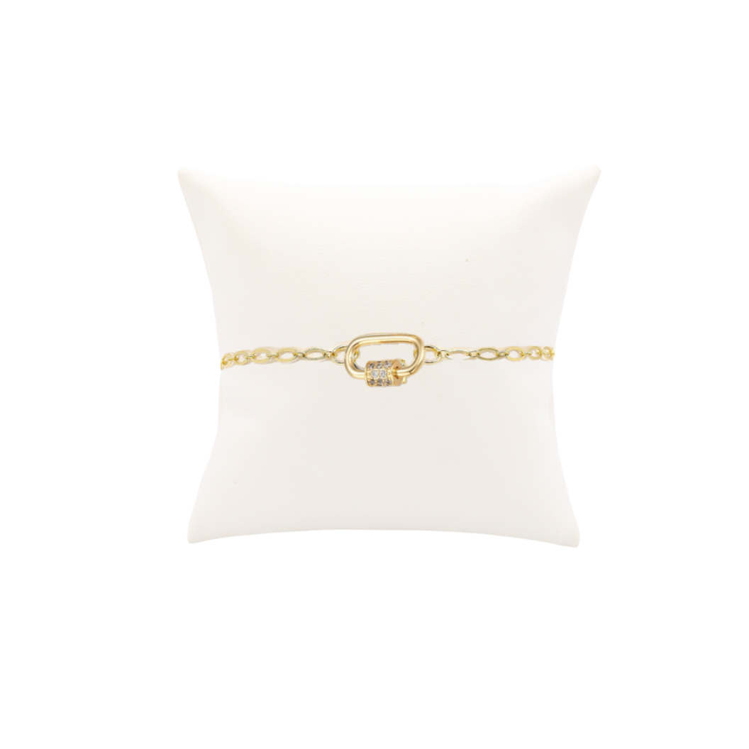 The Christie Necklace is a fun and artistic addition to your charm necklace collection. Its unique design adds a touch of flair to any outfit, making it a statement piece. Paired with our Gabi carabiner, the charm combinations are endless!