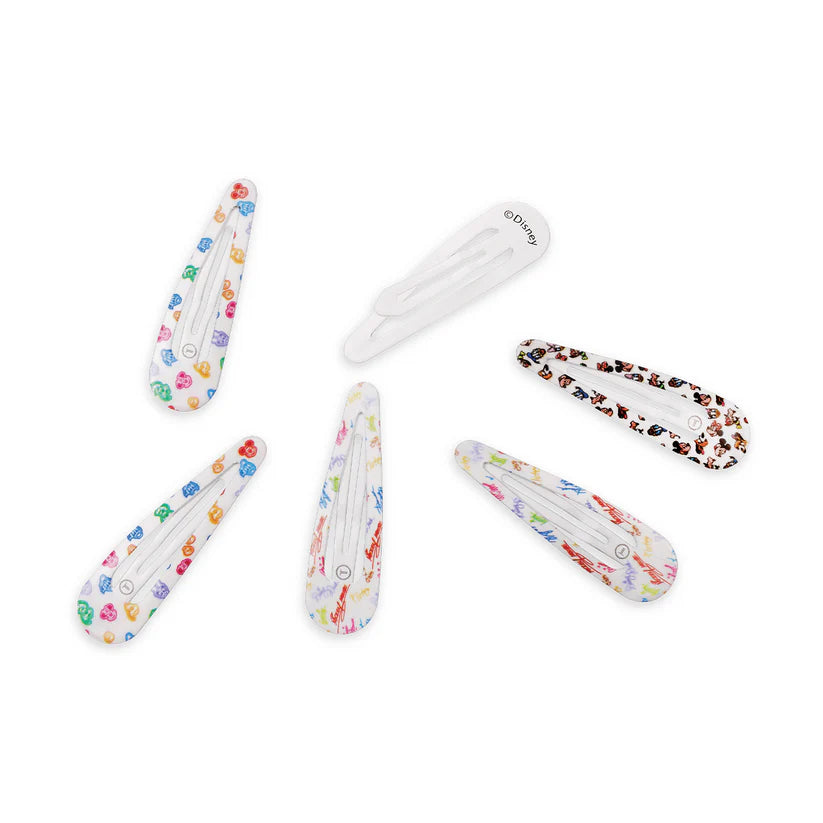 The Disney | TELETIES Mickey & Friends Snap Hair Clips are lightweight essentials designed to hold small sections of hair comfortably in place. Perfect for fine hair, kids styles, bangs, and face framing pieces, these snap clips provide gentle, secure hold without snagging or pulling.