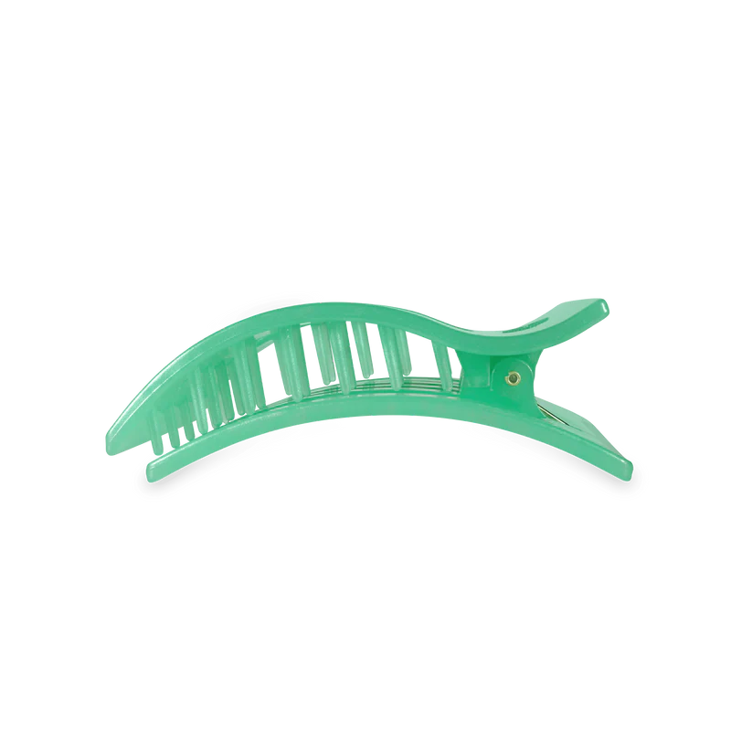 Lean back and relax - comfort just got a new shape. Introducing the TELETIES Spring Splash Medium Flat Rectangle Hair Clip in Green, the newest addition to our best-selling Flat Clip Collection. Joining the original Round and Square styles, this elevated rectangular design offers the same flat-back comfort and stronghold TELETIES is known for - now with a sleek, modern style.