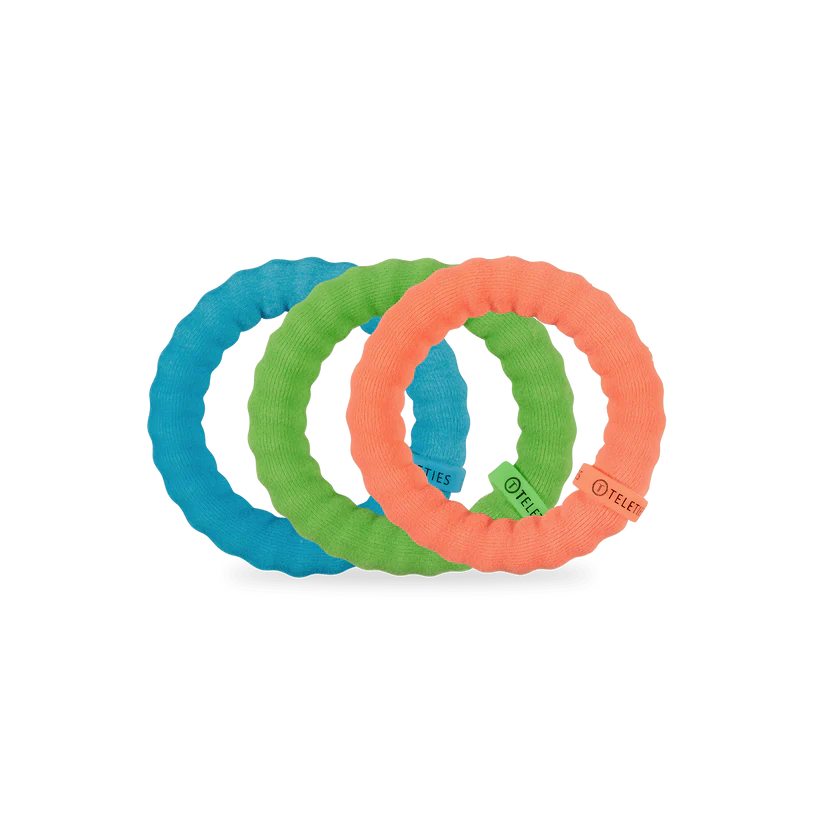 Color Rush! Large Nylon Hair Ties are the same game-changing TELETIES coil hair ties, now wrapped in soft nylon for added comfort and curl confidence. These fabric hair ties work great with all hair types, but were made specifically with curly and textured hair in mind.