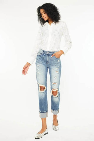 Available only while supplies last, the Kancan High Rise Distressed Boyfriend Fit Jeans is a special edition piece crafted in limited quantities to maintain its exclusivity and desirability among true denim lovers.