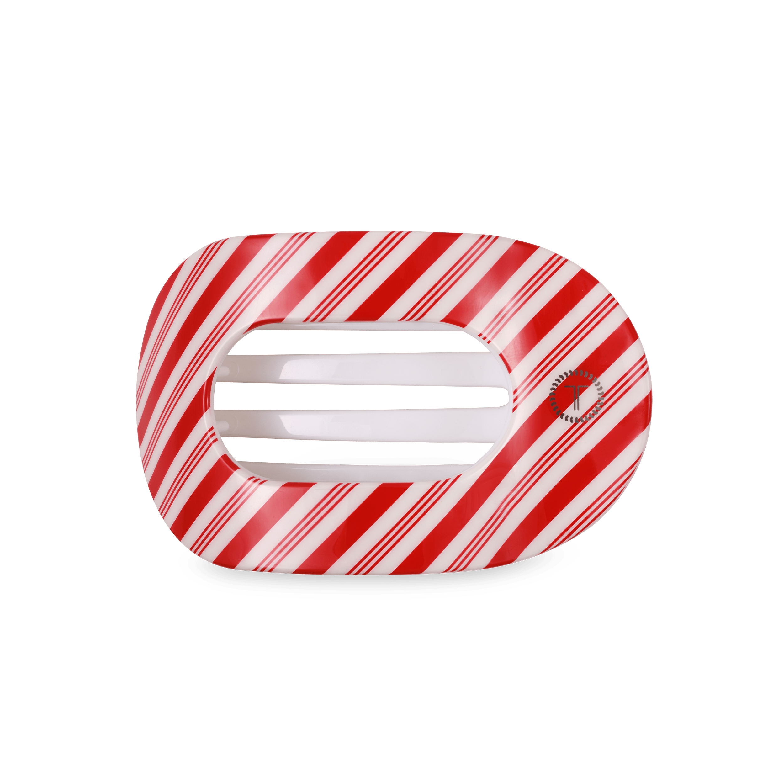 Lay flat and relax with the new TELETIES Candy Cane Crush Medium Flat Round Hair Clip in Red and White Stripes. This hair clip is designed to allow you to lay back flat, do yoga, or sit comfortably in a seat with a headrest, and it is made with the same material that is nearly unbreakable.