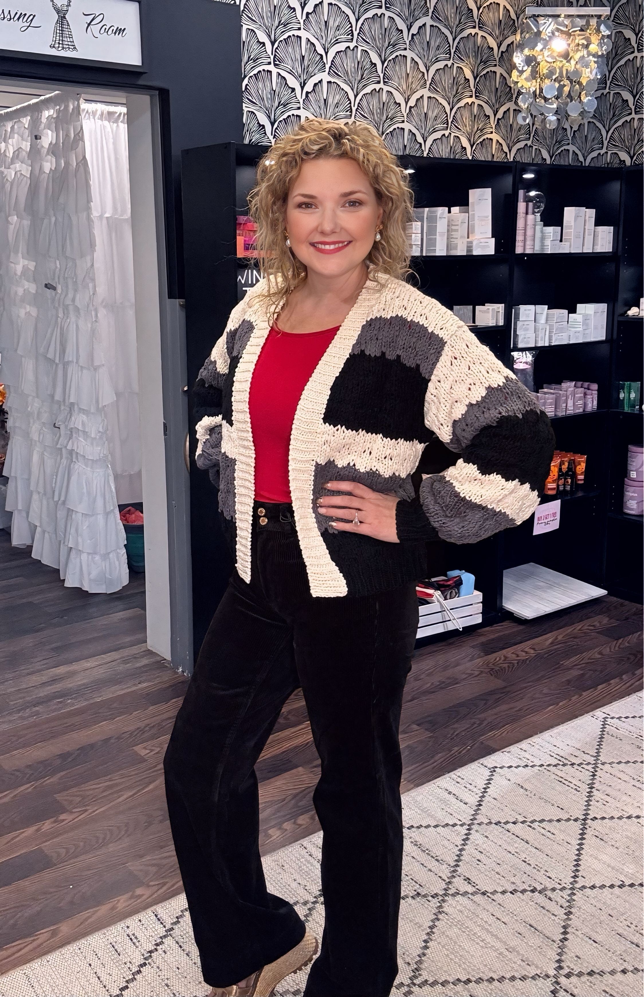 Discover the versatile and stylish Color Block Cardigan, a must-have addition to your wardrobe that effortlessly combines comfort and fashion. This Color Block Cardigan features a striking multi-color design that brightens any outfit while providing cozy warmth. Crafted with soft, breathable fabric, it ensures all-day comfort whether you’re at work, running errands, or enjoying a casual outing. The Color Block Cardigan’s flattering fit and timeless silhouette make it easy to layer over your favorite tops or dresses, adding a pop of color and personality to your look. Embrace bold style and comfort with the Color Block Cardigan—your go-to piece for versatile, standout fashion throughout the seasons.