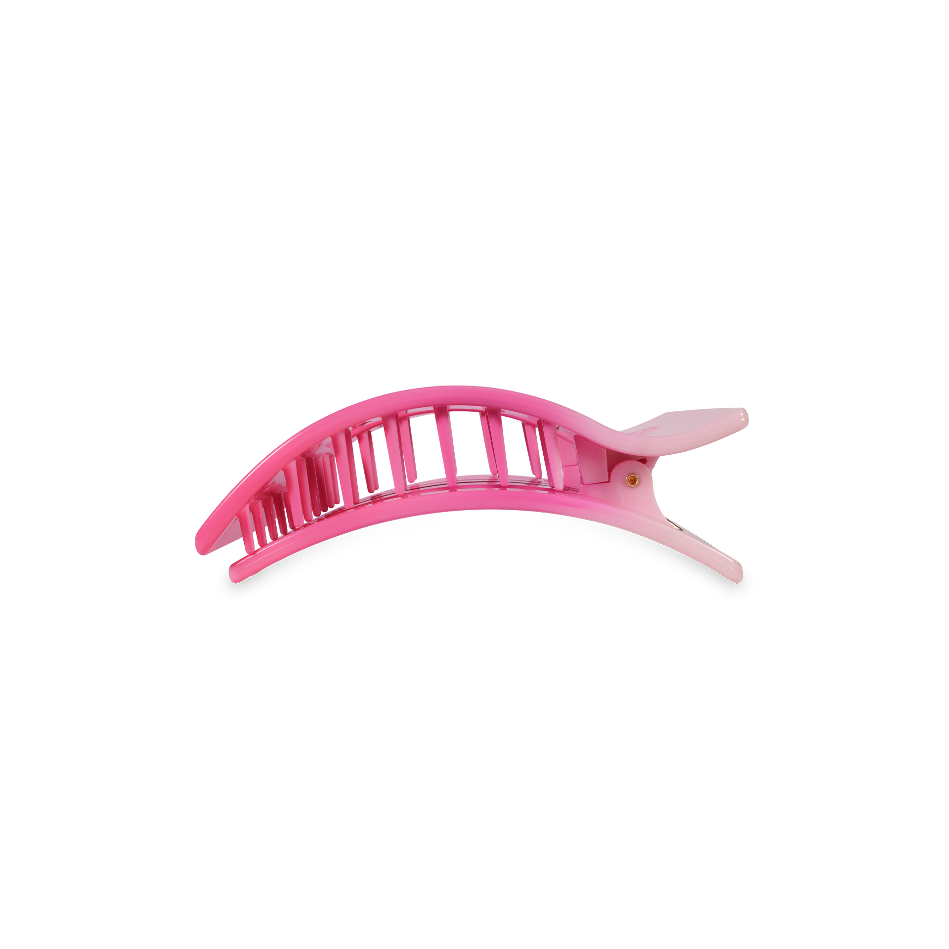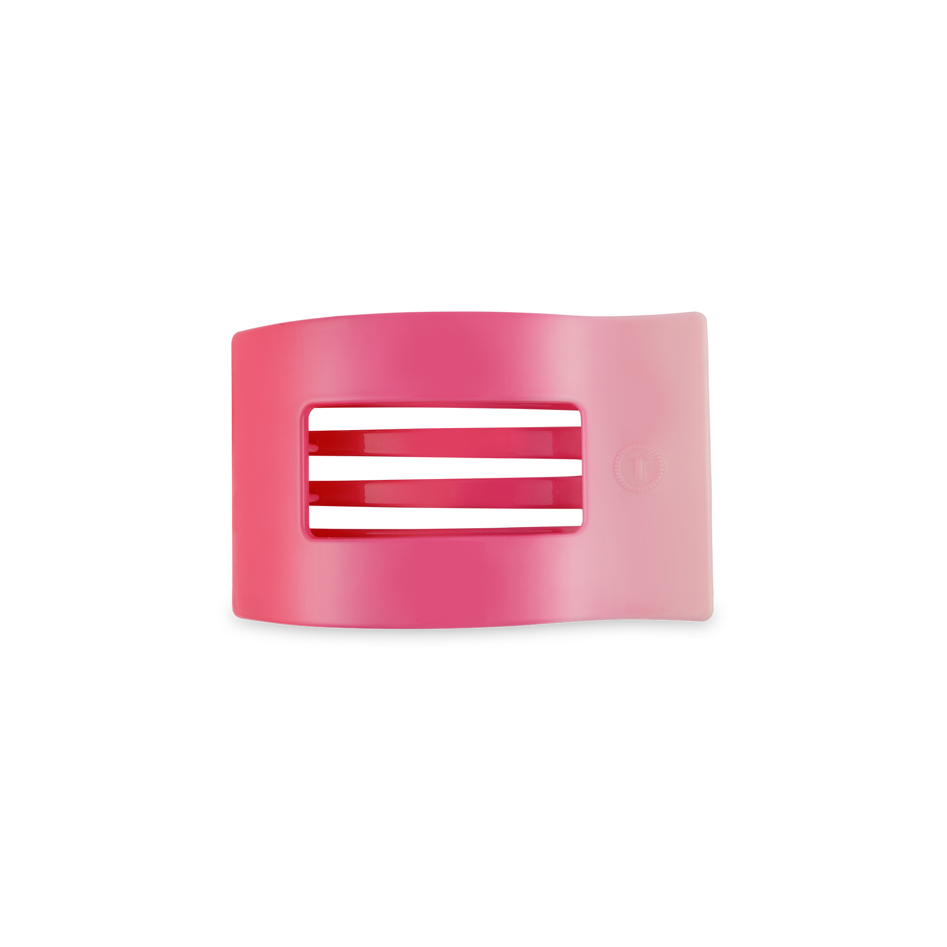 Lean back and relax - comfort just got a new shape. Introducing the TELETIES Kiss & Tell Small Flat Rectangle Hair Clip in Pink, the newest addition to our best-selling Flat Clip Collection. Joining the original Round and Square styles, this elevated rectangular design offers the same flat-back comfort and stronghold TELETIES is known for - now with a sleek, modern style. Flat-back design = comfortable to lay back in Chic rectangular shape adds an elevated, on-trend look Strong, flexible hold with bendable teeth Nearly unbreakable, lightweight material Works for all hair types Perfect for lounging, travel, yoga and daily wear
