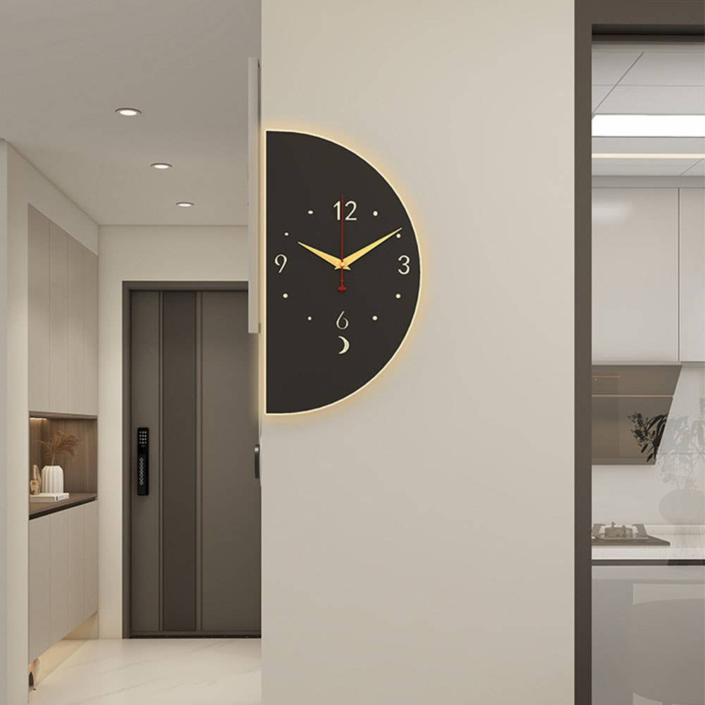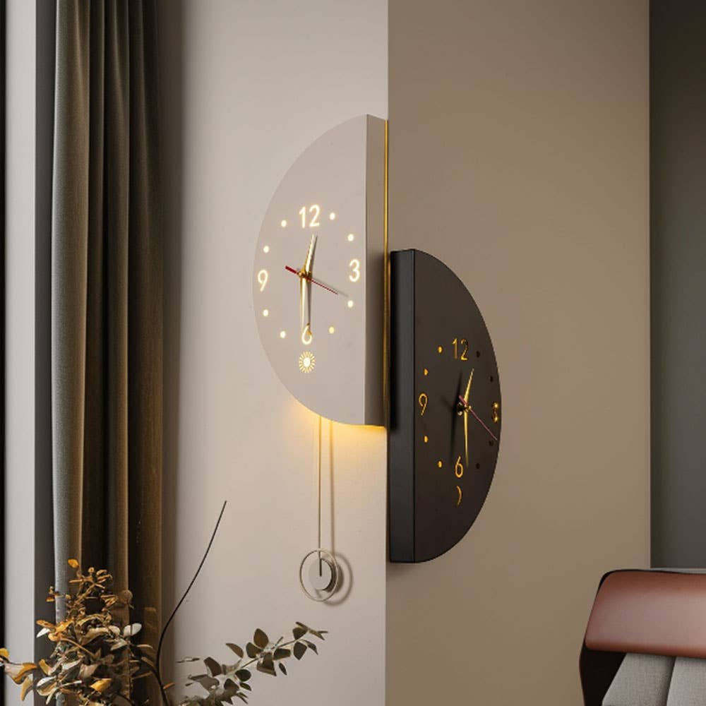 Our Semi-Circular Wall Clock, designed with a unique corner shape that adds elegance to your space. This Creative Corner Double-Sided Clock not only makes checking the time effortless but also serves as a stylish decoration, enhancing your decor instantly. With a charming swinging function, it brings a dynamic element to your wall. The durable metal hands ensure accurate timekeeping and long-lasting performance, while the rust-resistant metal dial adds both function and style. Plus, the silent quartz movement allows you to set different times on each side, perfect for keeping track of loved ones across time zones.